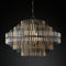 The Elrion Collection distills 1970s design into a study of rhythm and geometry. Ascending and descending concentric spires in metal and acrylic create a sculptural silhouette, filtering light into a layered composition of shadow and glow.