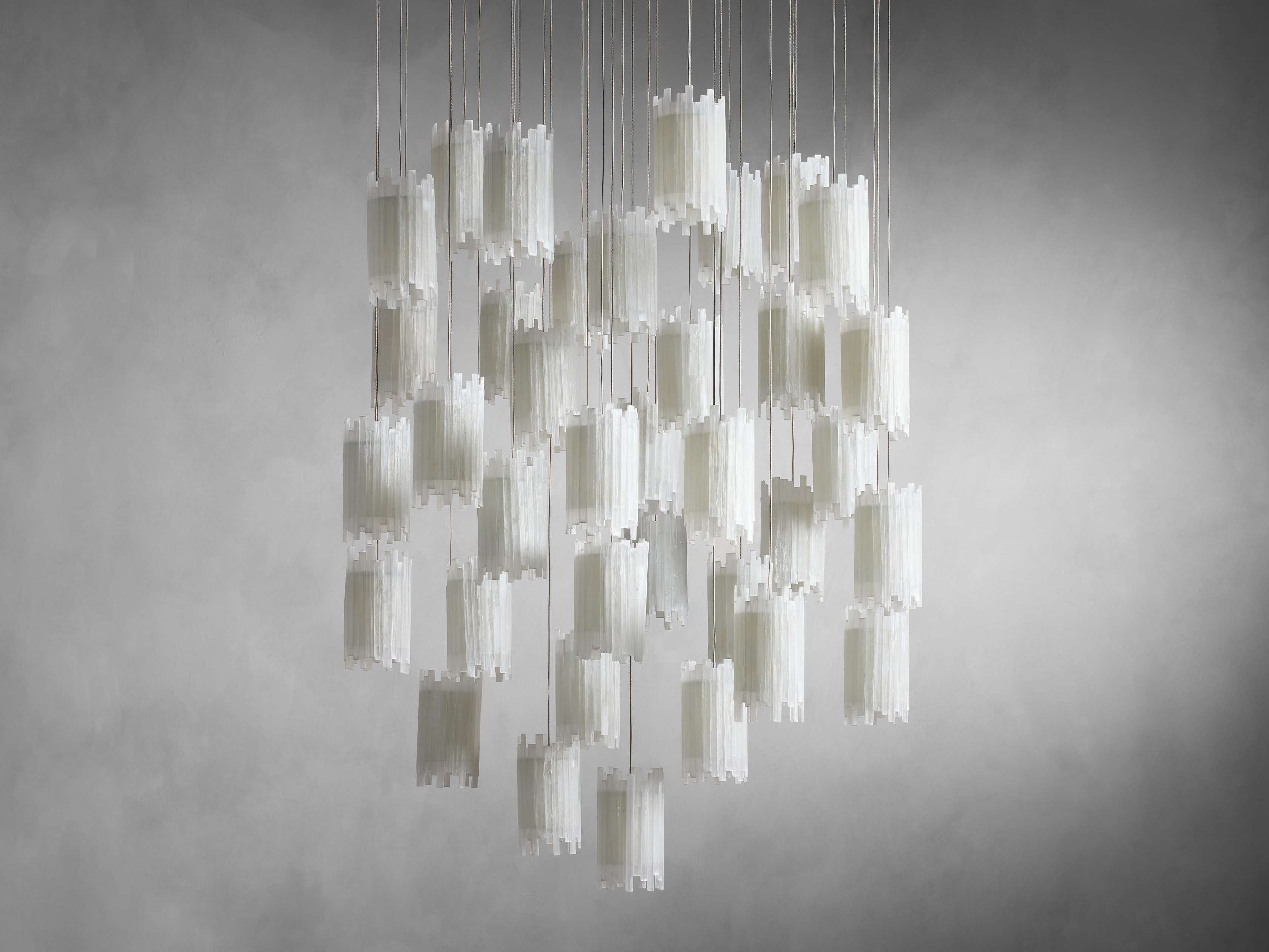 Capture the beauty of falling stars casting a stunning glow in your home with our Gianna Collection. Featuring thin, adjustable PVC cables that are customizable to your space, each drop juxtaposes industrial materials with exquisite natural selenite stone shades. When illuminated, the drops appear to be floating in midair—creating a unique and elevated statement in any room.