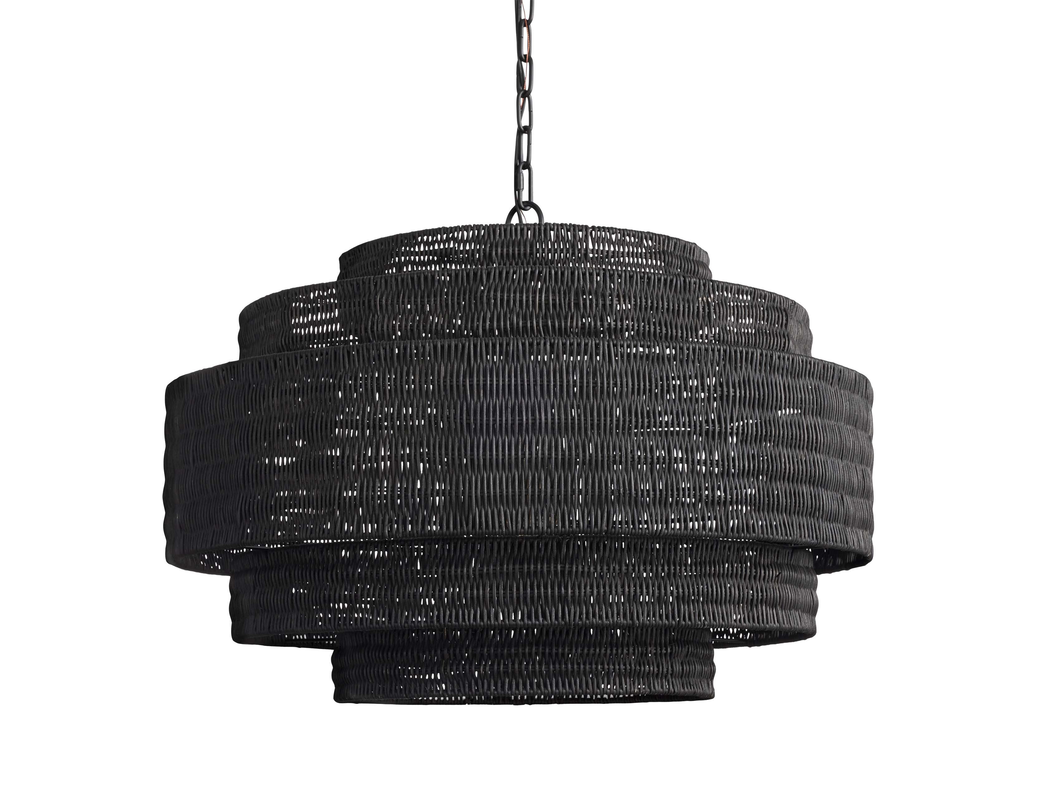 The tiered, handwoven rattan shade of our Paloma Lighting Collection enhances any living or dining space with a touch of organic texture.