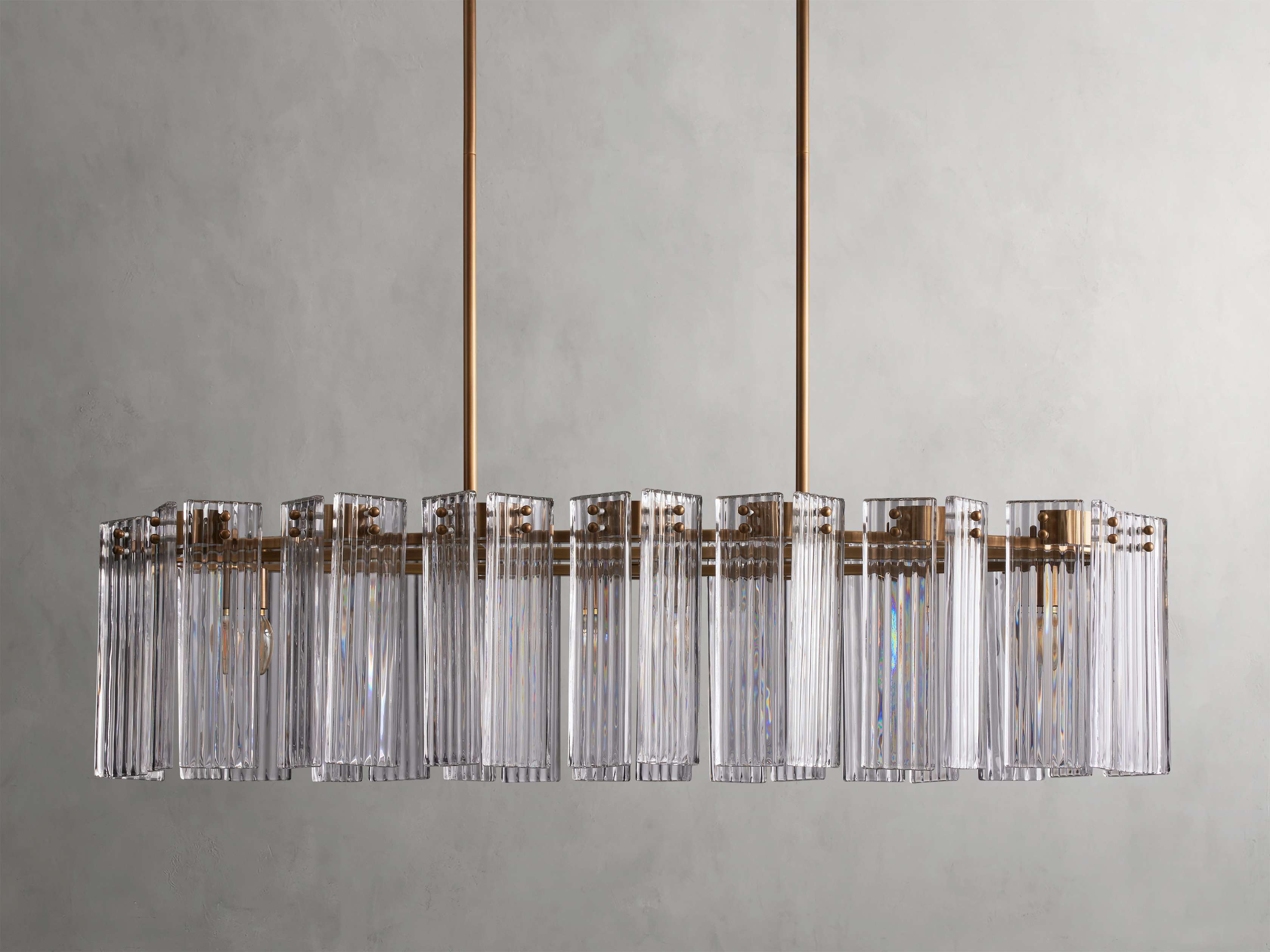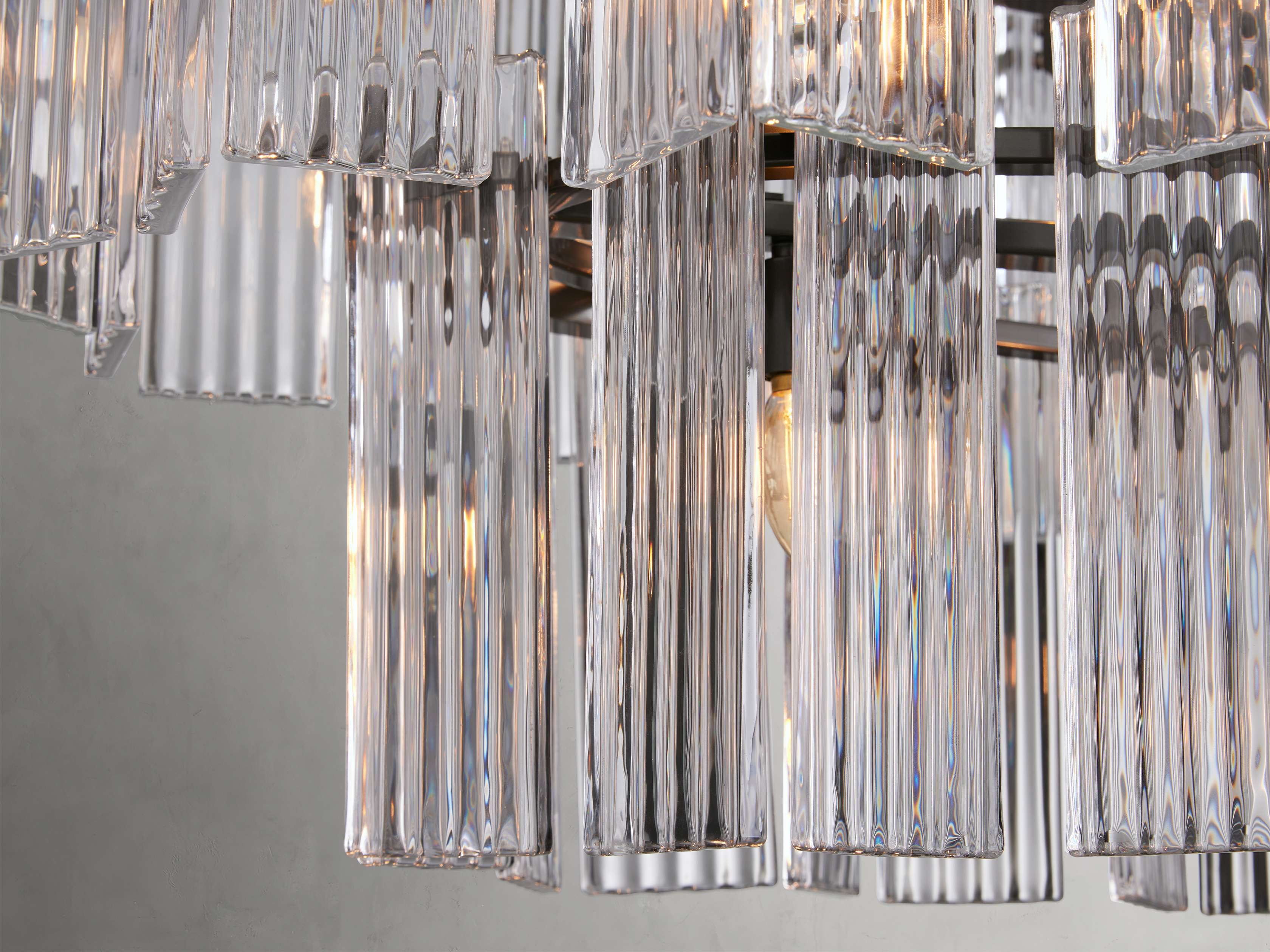 A fresh take on a traditional silhouette, our Delsie Collection radiates old Hollywood glamour. Crafted from reeded glass panels elegantly arranged around a steel frame, Delsie creates dramatic ambiance in any space.