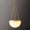 The Halver Collection highlights the elegance of midcentury Italian design through half-dome alabaster shades paired with slender metal rods. Each pendant emits a warm, diffused glow, revealing the stone's natural veining and refined textural depth.