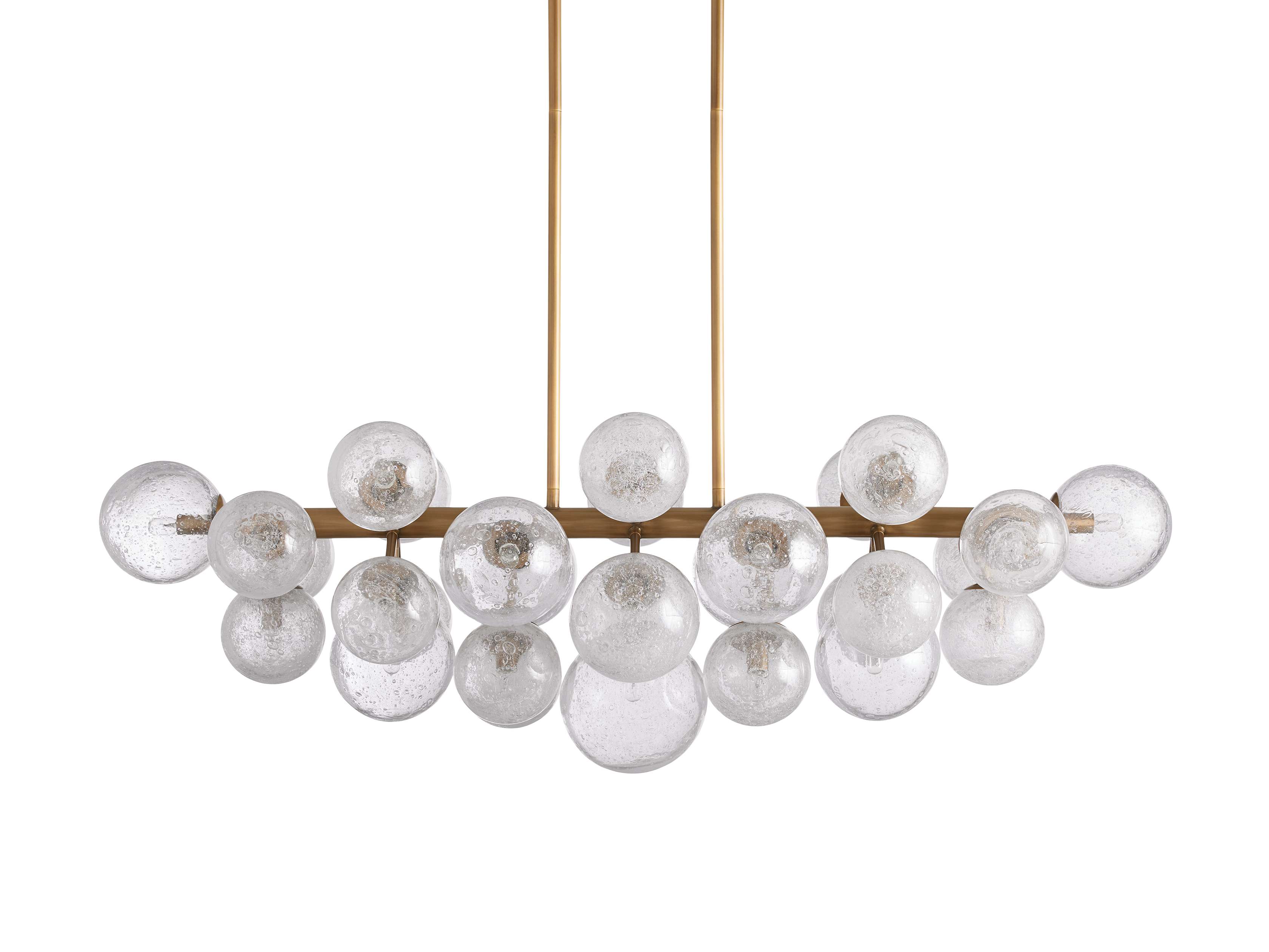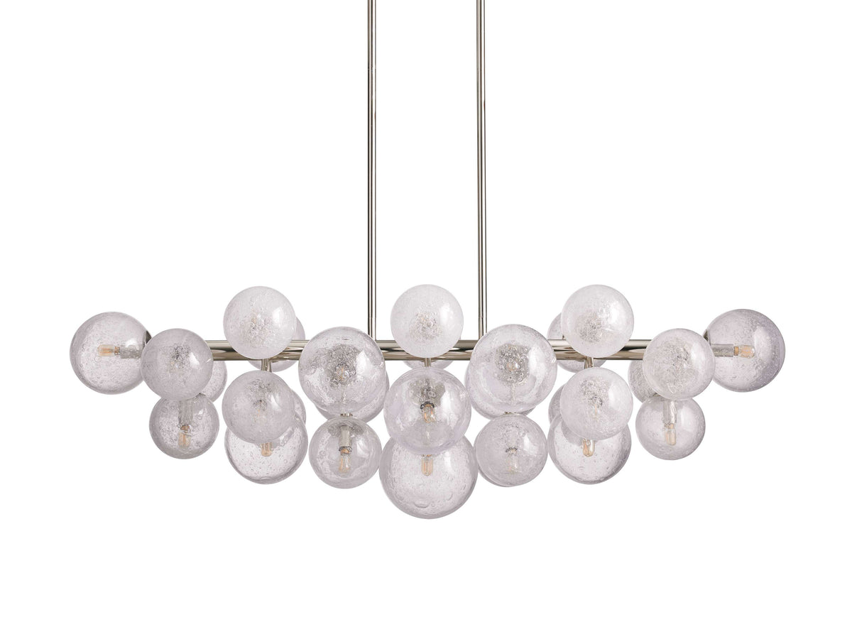 A fusion of rustic charm and industrial design, our Mandoza Collection features stunning silhouettes and mixed-material style. Each individual glass globe is hand-blown with a reactive technique, creating a dense network of bubbles under a thick layer of glass. The result has a striking effect when illuminated from within, casting light from every angle.