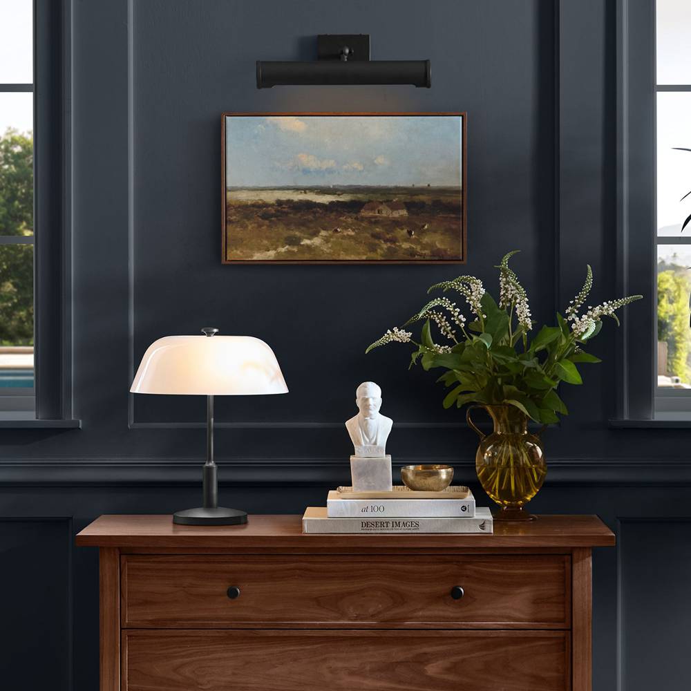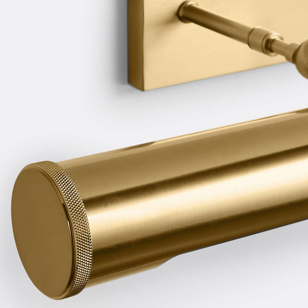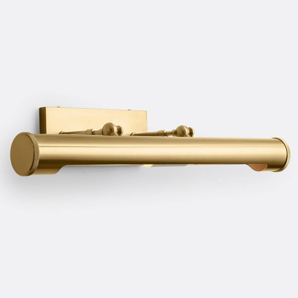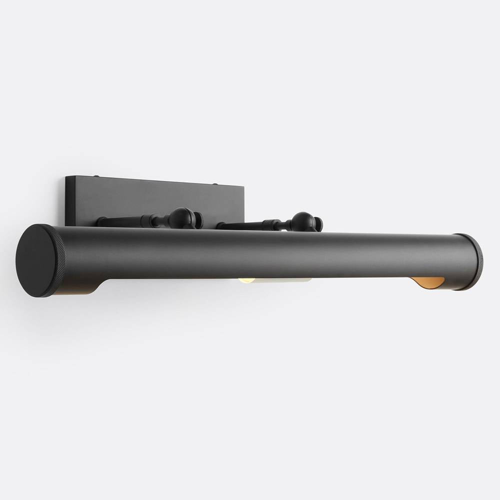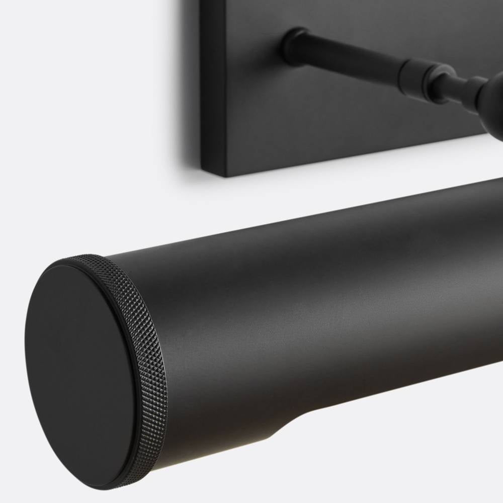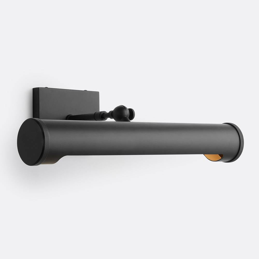 The Lorian Collection transforms the picture light into a refined sculptural form. A slender cylindrical body, accented with subtle knurled details, directs a focused beam of light, creating precise illumination that highlights artwork with quiet elegance.