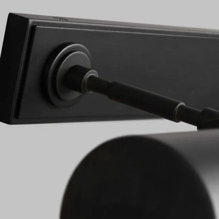 The Merrow Collection emphasizes refined restraint through linear silhouettes and balanced proportion. Brass construction and a contoured hood channel light with poised clarity, illuminating artwork in a manner both subtle and precise.