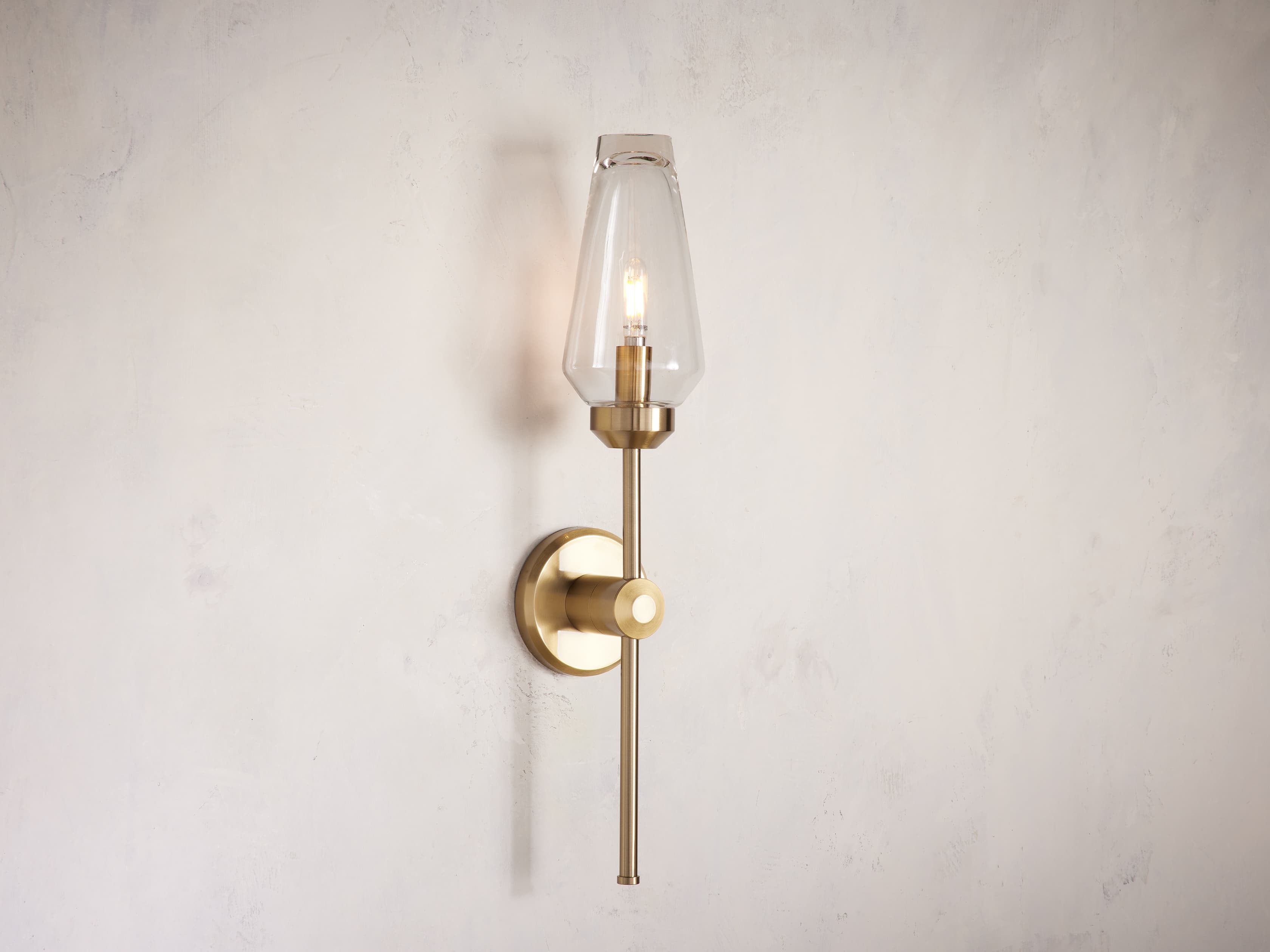 With dense, mouth-blown glass living harmoniously with bronze and brass accents, the striking silhouette of our Arrow Lighting Collection creates a perfectly asymmetrical yet linear design.