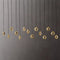 The Eclavia Collection reimagines celestial structure through illuminated crystal spheres, arranged in geometric rhythm and suspended within a linear brass frame. Each radiant orb glows with quiet precision, echoing the grandeur of planetary motion.