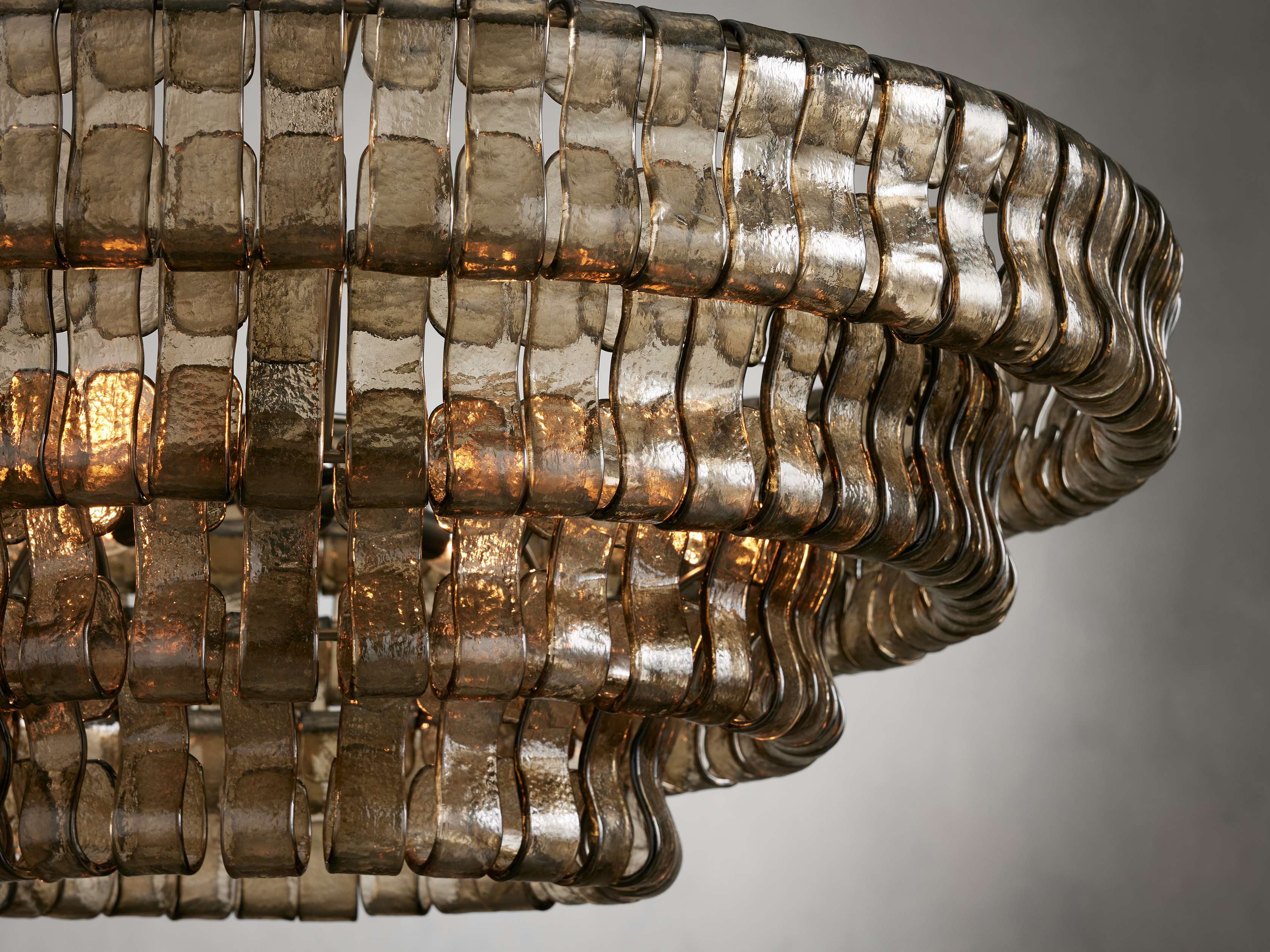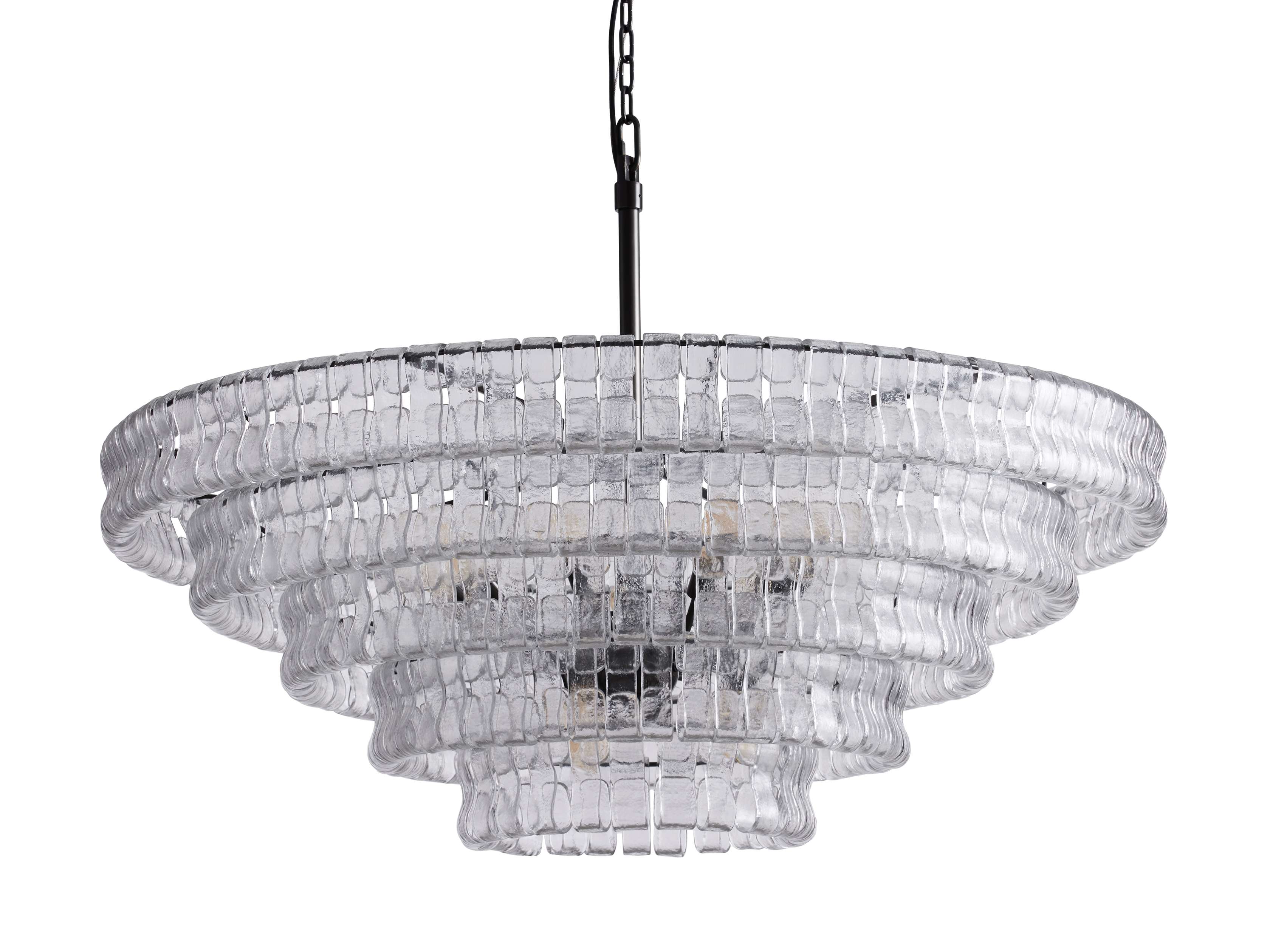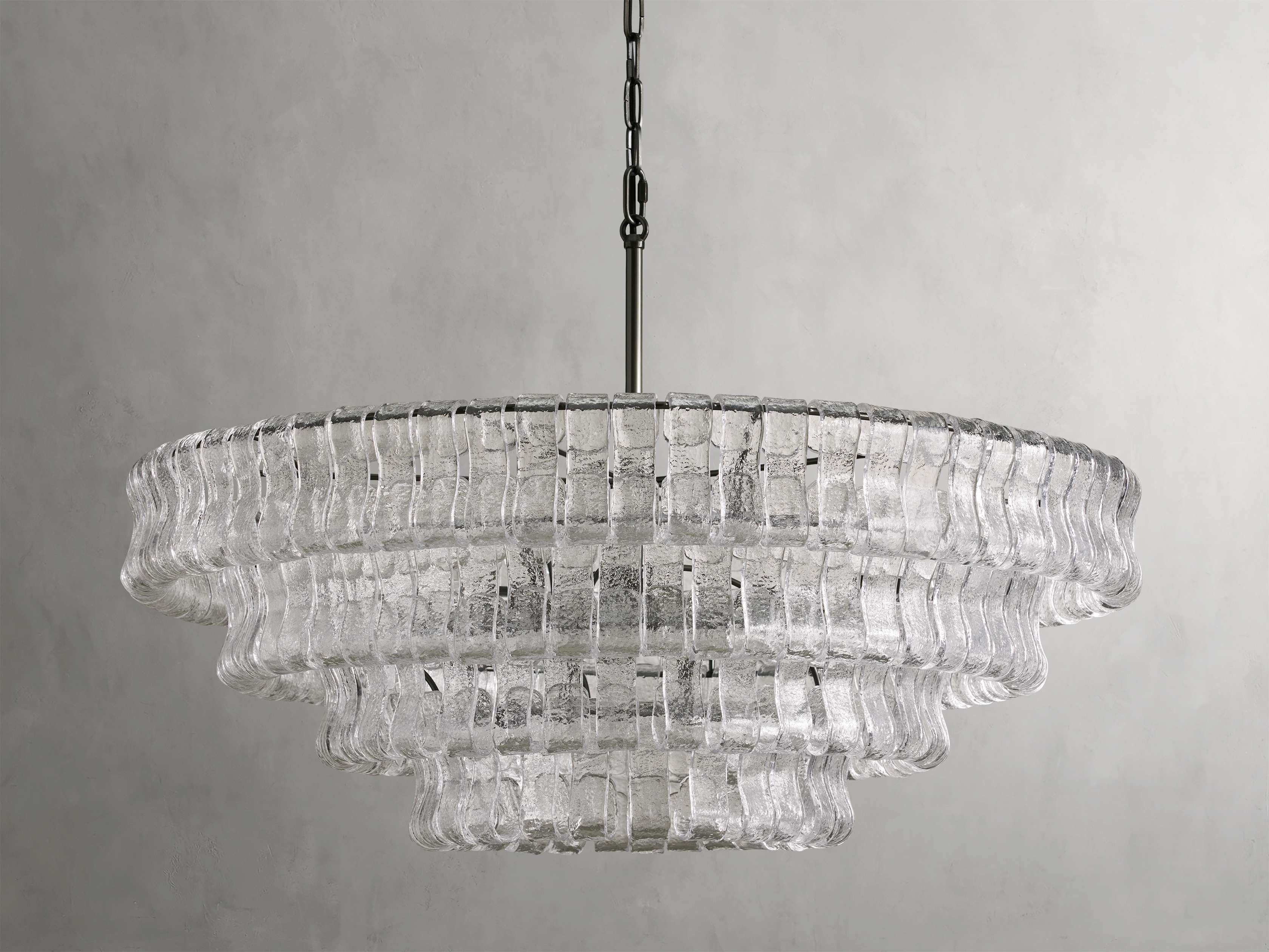 Inspired by renowned Italian glass, our Ghiaccio Collection features chandeliers that artfully diffuse light through curved, textured glass pieces. Complemented by a plated-brass finish, Ghiaccio elegantly illuminates any room.