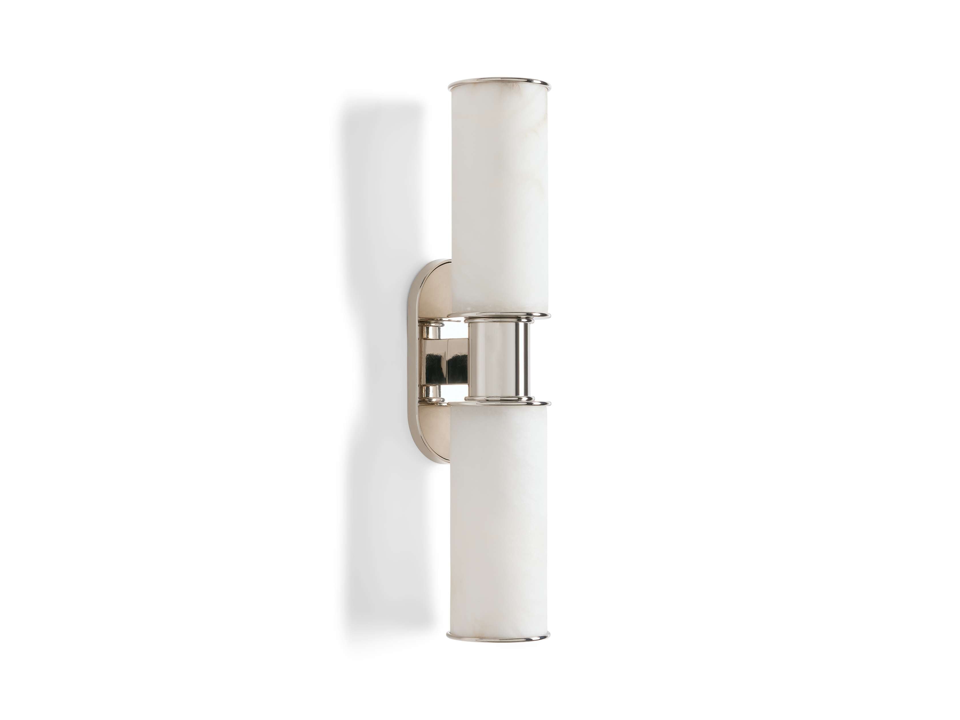 - Harlin is an Arhaus exclusive lighting collection crafted from steel and brass with a polished nickel, bronze plated, or burnished brass finish with an alabaster stone cloche to complement your bathroom aesthetic.