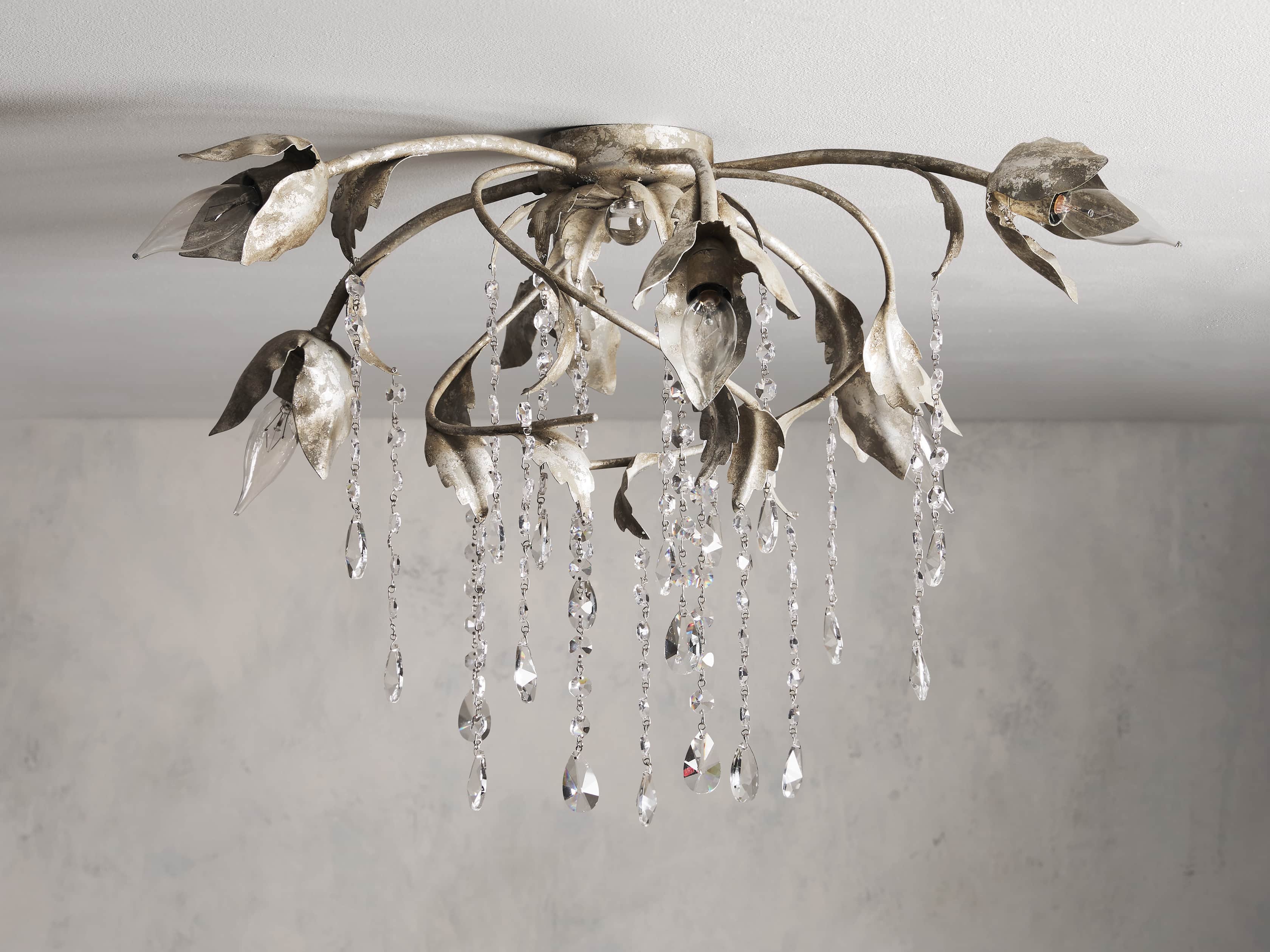 Like freshly fallen rain on draped garden vines, our Viticcio Lighting Collection is hand-molded by Italian artisans from solid iron. Floral flourishes are elegantly accentuated by a hand-applied silver finish, and hand-strung crystals dangle to scatter drops of light around your space.