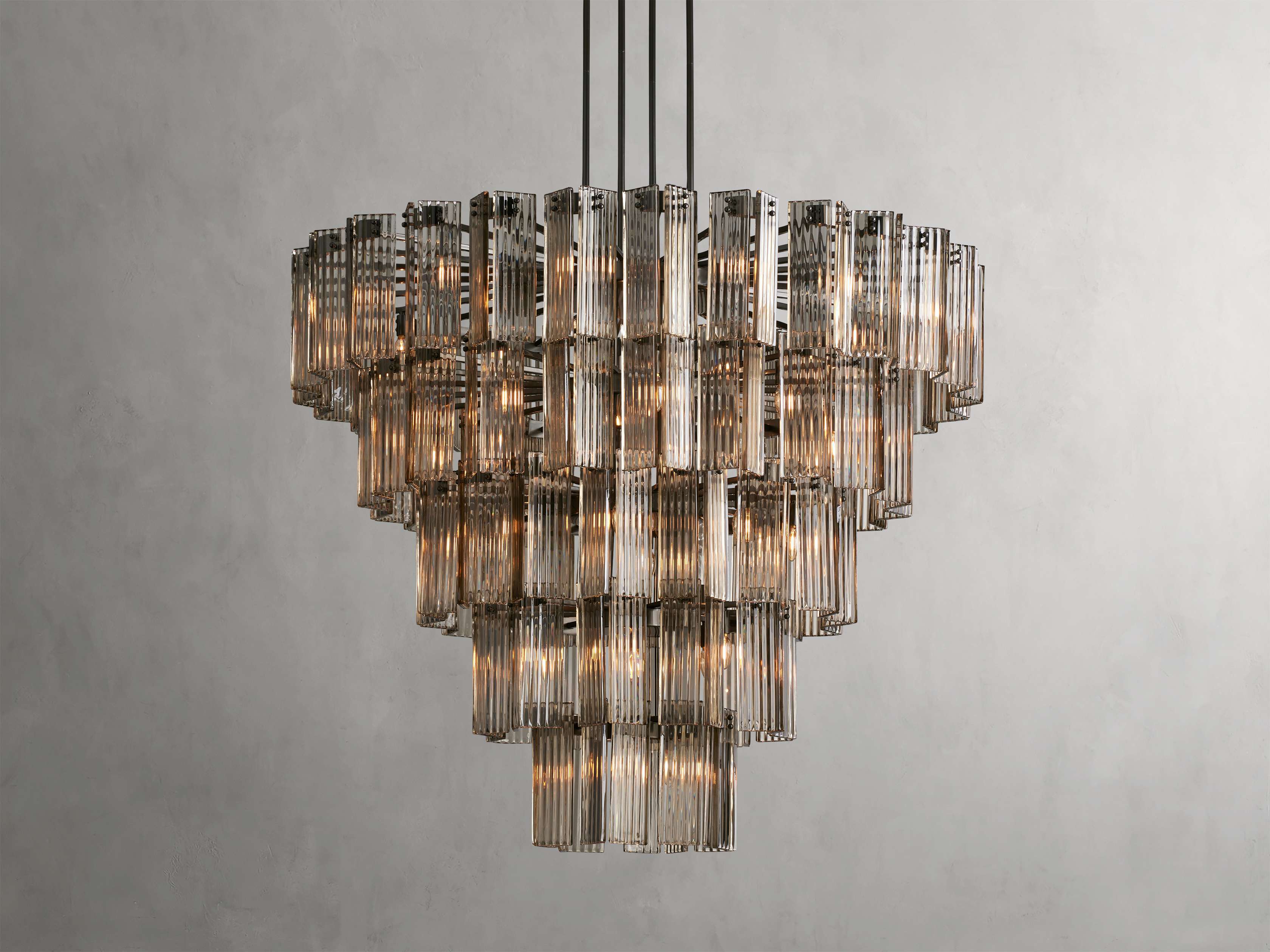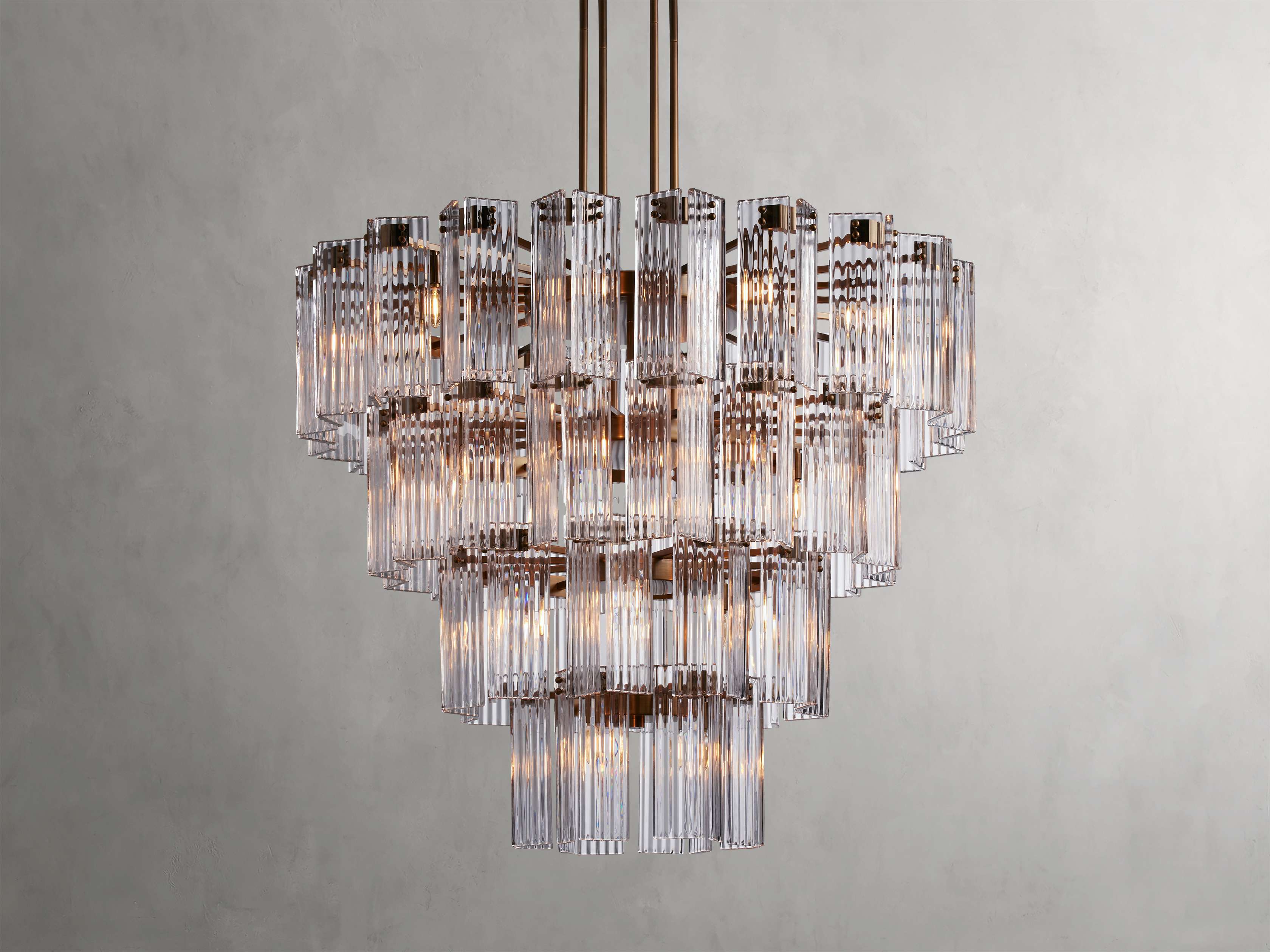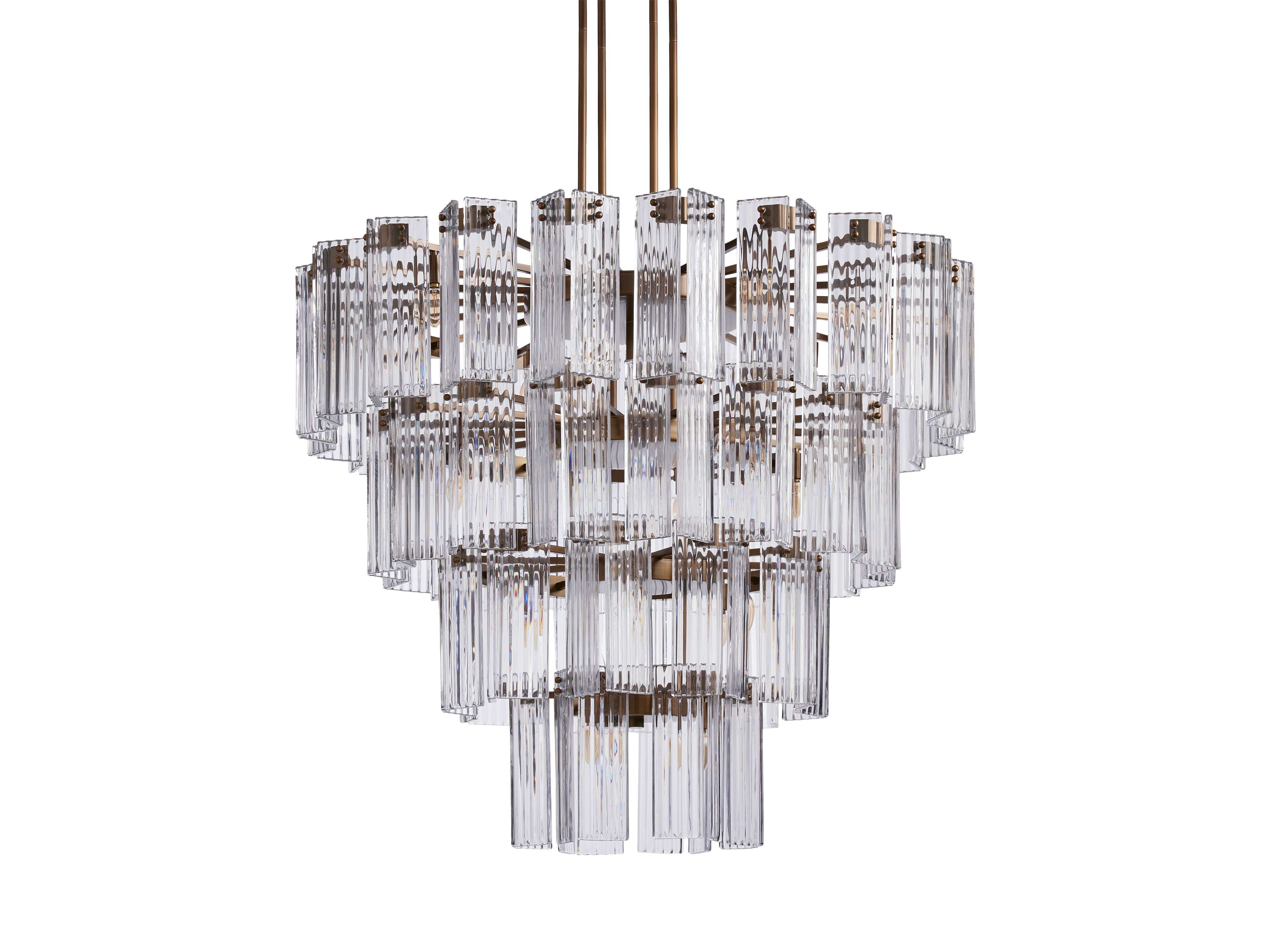 A fresh take on a traditional silhouette, our Delsie Collection radiates old Hollywood glamour. Crafted from reeded glass panels elegantly arranged around a steel frame, Delsie creates dramatic ambiance in any space.