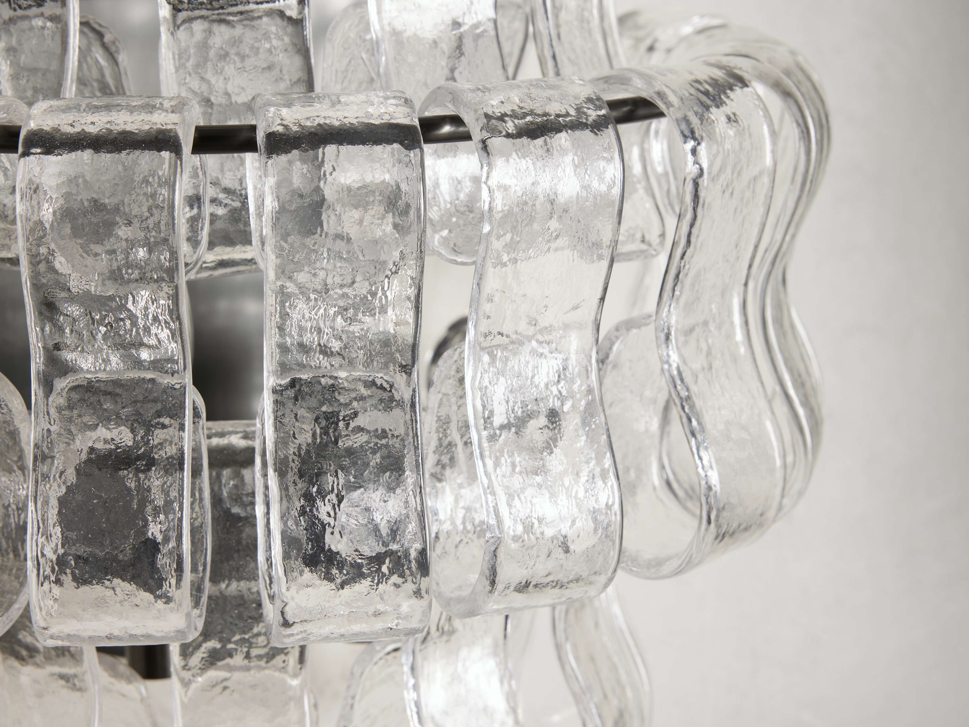 Inspired by renowned Italian glass, our Ghiaccio Collection features chandeliers that artfully diffuse light through curved, textured glass pieces. Complemented by a plated-brass finish, Ghiaccio elegantly illuminates any room.