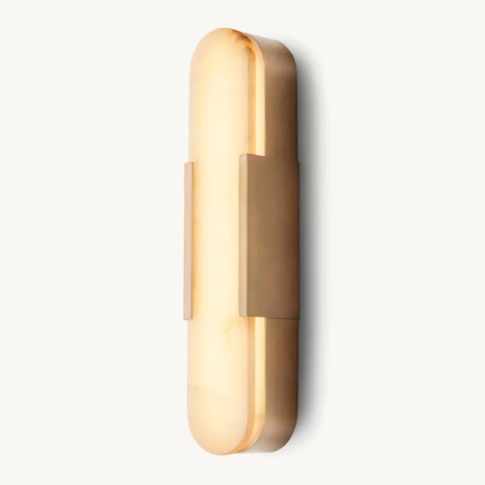 The Maderno Collection draws upon the sculptural clarity of midcentury Italian design. Geometric planes of alabaster and metal are composed in balance, where translucent stone diffuses a softened glow and the structure imparts quiet strength.