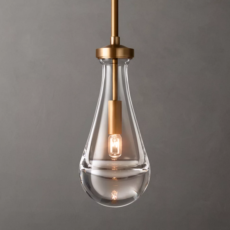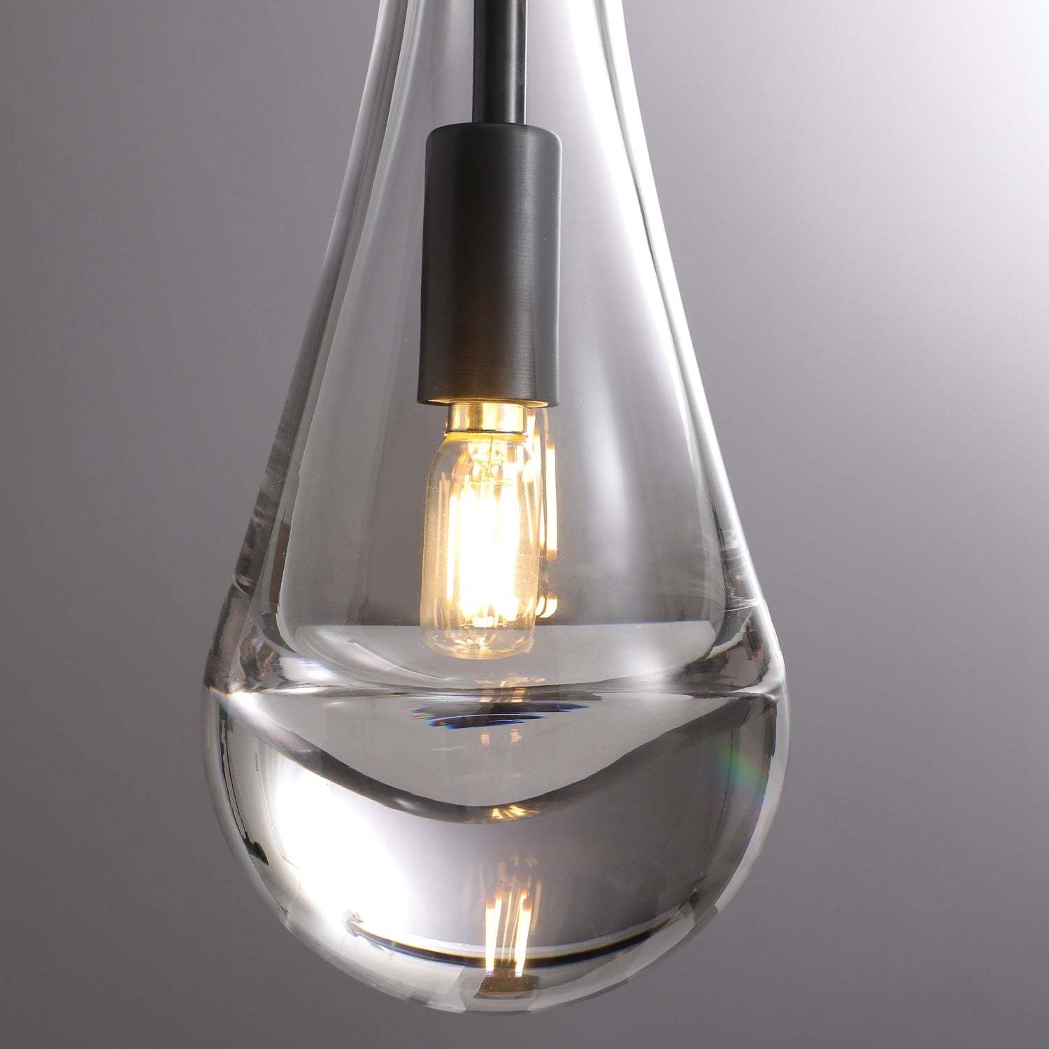 Inspired by the stillness of rainfall, the Raindrop collection brings a sense of calm and fluidity to any space. Hand-blown glass droplets, suspended by slender black cords or mounts, cast soft, rippling reflections across walls and ceilings.